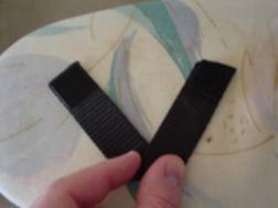 Prepare the cut ends of the strap rings by running the flame from a lighter back and forth. Once the edge material has begun to melt quickly pinch the end using the side of the light and a hard surface to shape the edge. Use the super glue to attach Velcro pieces to the ends. Try out the rings to make sure they fit and that the Velcro matches up, make changes as needed. |